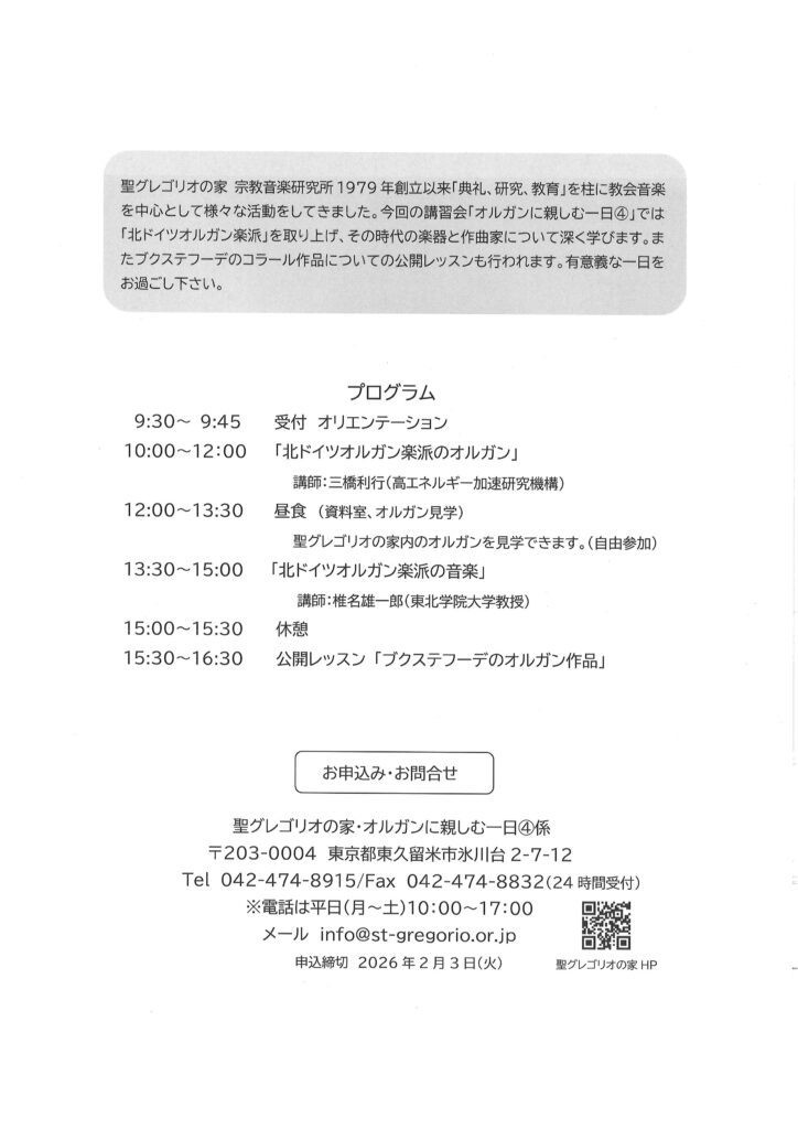 【お知らせ】オルガンに親しむ一日④(2026.2/11)