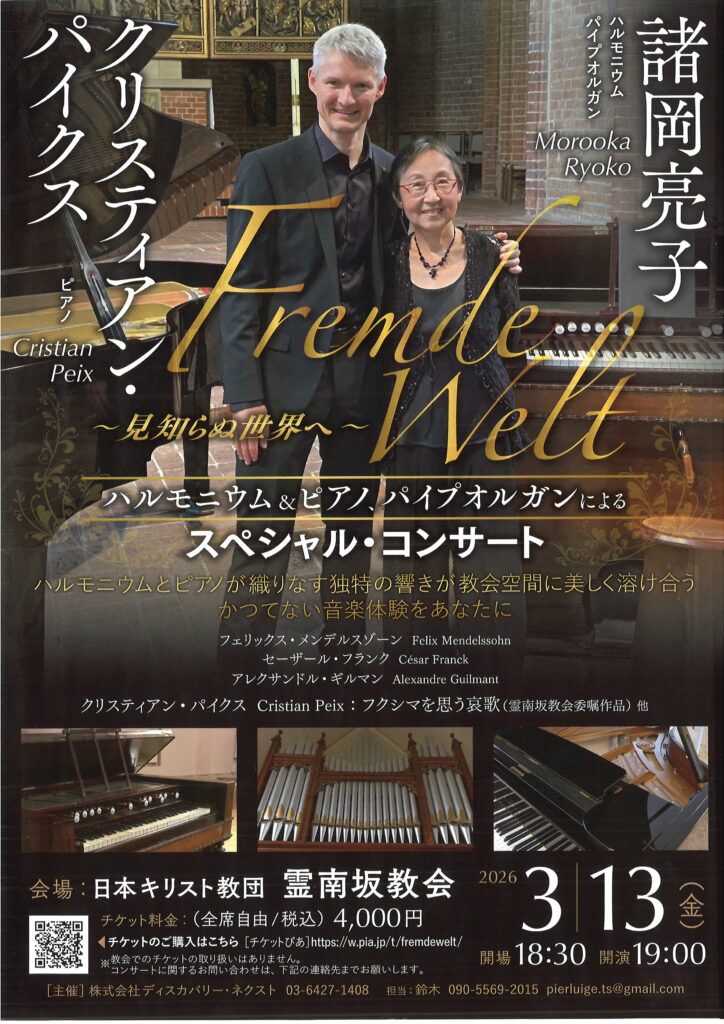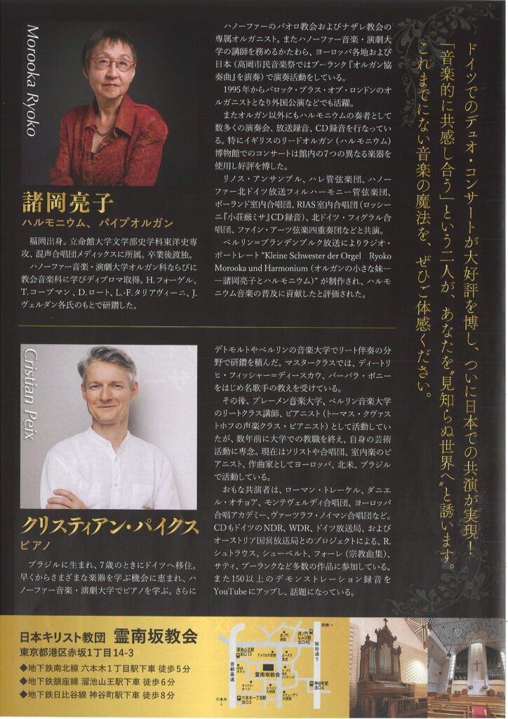 ※ ハルモニウム&オルガン奏者の諸岡亮子さんは、3月27~29日に聖グレゴリオの家で開催される「合唱音楽ワークショップ2026」の通訳として協力していただきます。