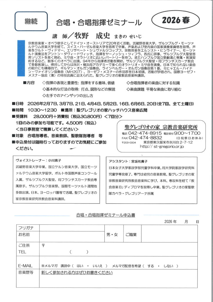 【お知らせ】合唱・合唱指揮ゼミ 2026春(2月7日開講、7回コース)