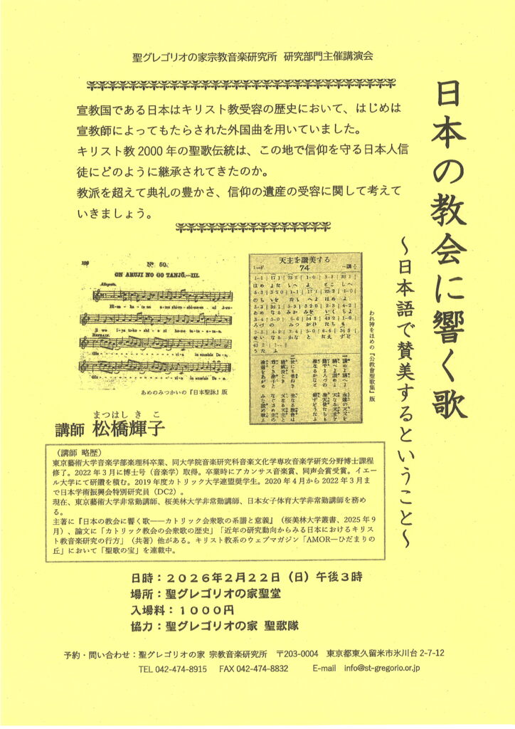 【お知らせ】日本の教会に響く歌 講師:松橋輝子