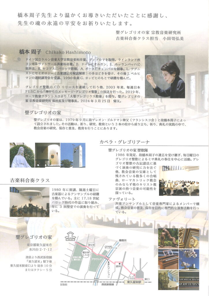 古楽科合奏クラス(指導:小田切弘美先生)が中心となって2024年3月25日に帰天された橋本周子先生を偲んで追悼演奏会を開催します。