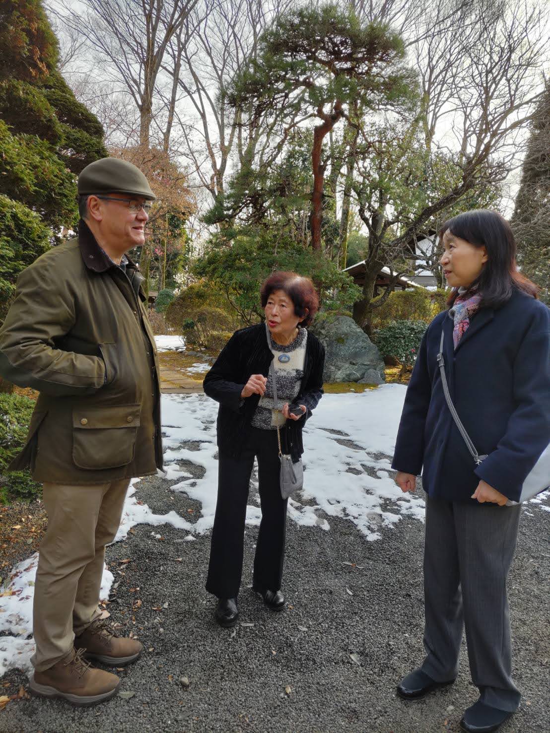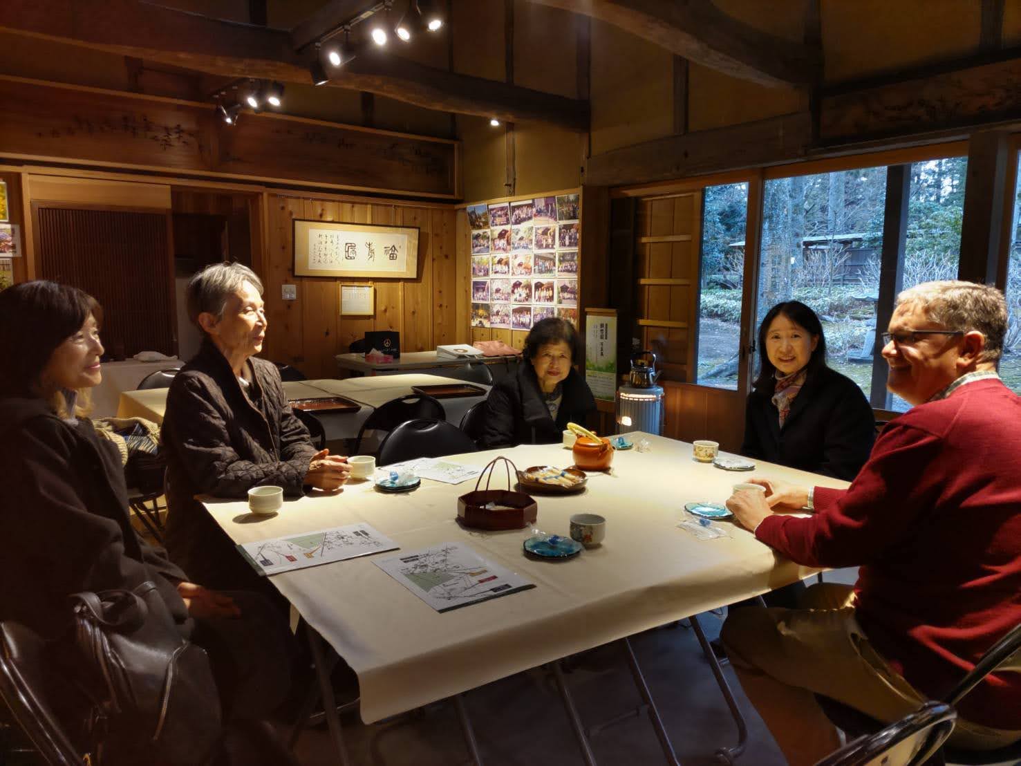また9日には、東久留米市柳窪にあり古い茅葺や瓦葺屋根の古民家と武蔵野の雑木林などを有する国の登録有形文化財にも指定されている村野家住宅「顧想園」を数人のスタッフとともに見学し、ご家族からの説明を聴く機会を特別に開いてくださいました(写真)。