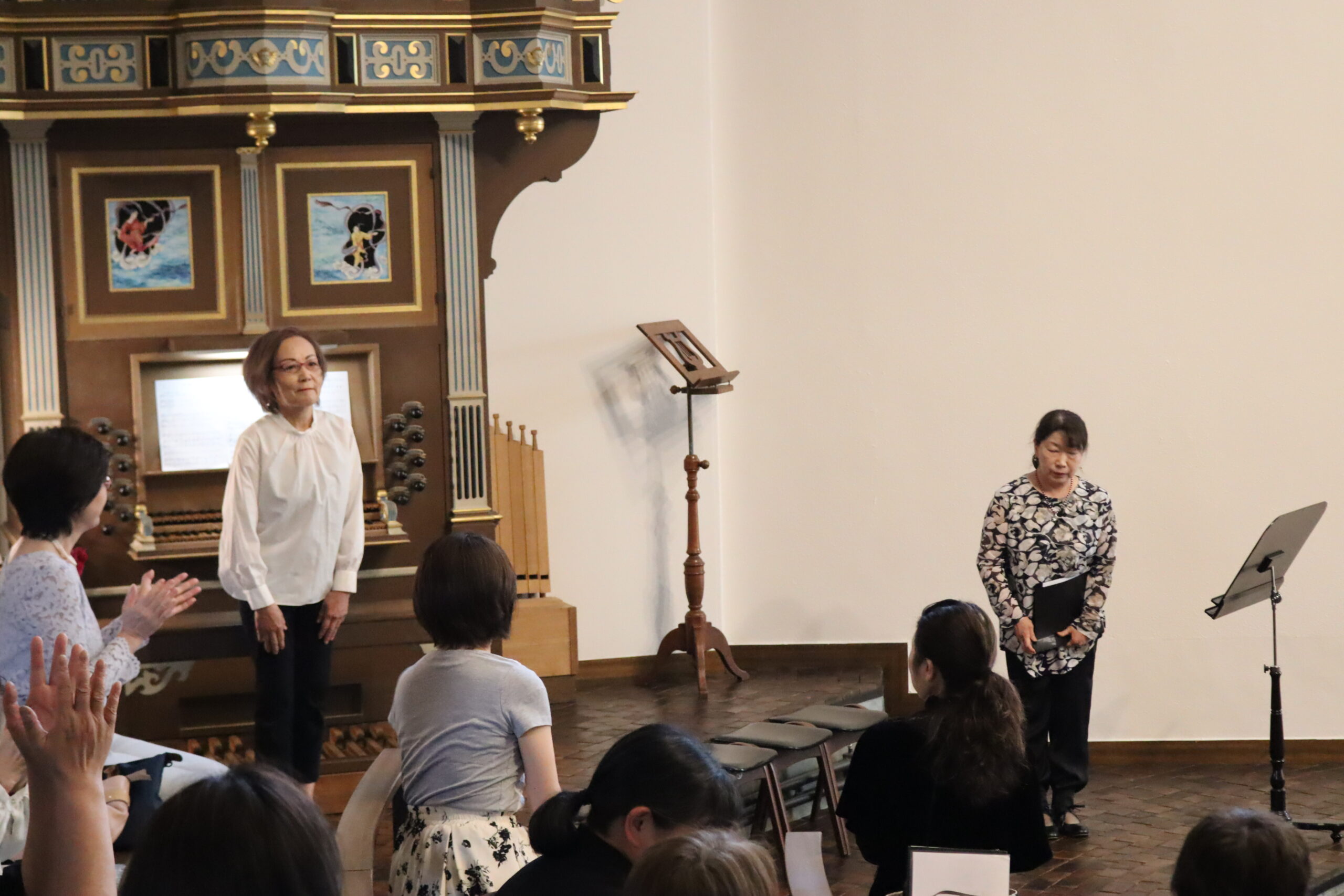 聖グレゴリオの家教会音楽科本科・専攻科で学んでいる現役生8名による演奏会を、5月26日(日)午後聖堂で開催しました。普段は水曜と木曜に分かれて別々に授業を行っているメンバーが当日合同して演奏する合唱、先生から個別に指導を受けながらこの日のために黙々と練習を重ねてきたオルガン曲、個人レッスンとともに日程が迫る中で伴奏者と合わせる時間を確保しながら取り組んだ声楽曲など、それぞれが成果を発表する演奏となりました。
