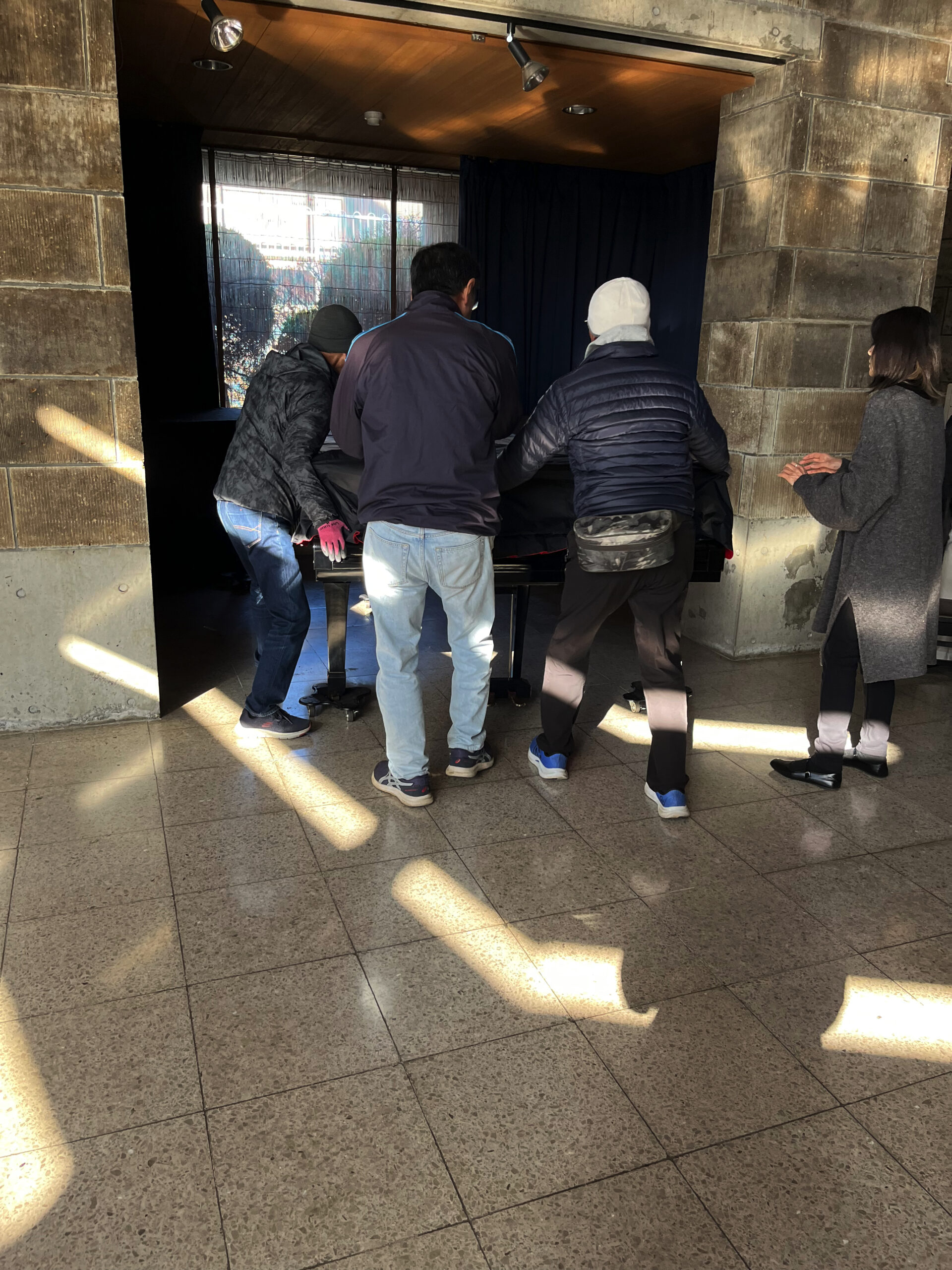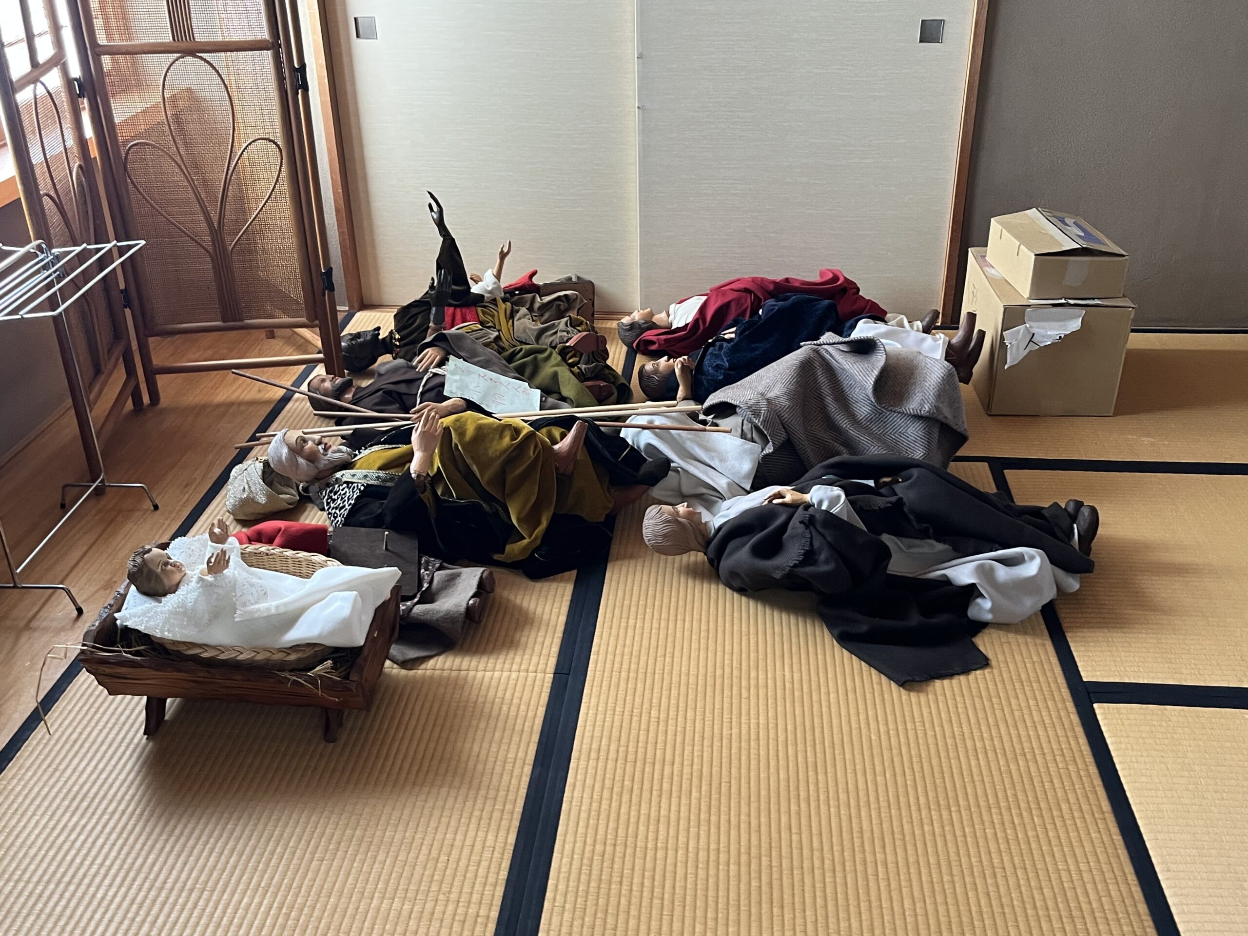 1月9日午後、ロビーにあったクリスマスの馬小屋(プレゼピオ)や屋外で装飾していた照明器具などの撤去作業を行いました。
