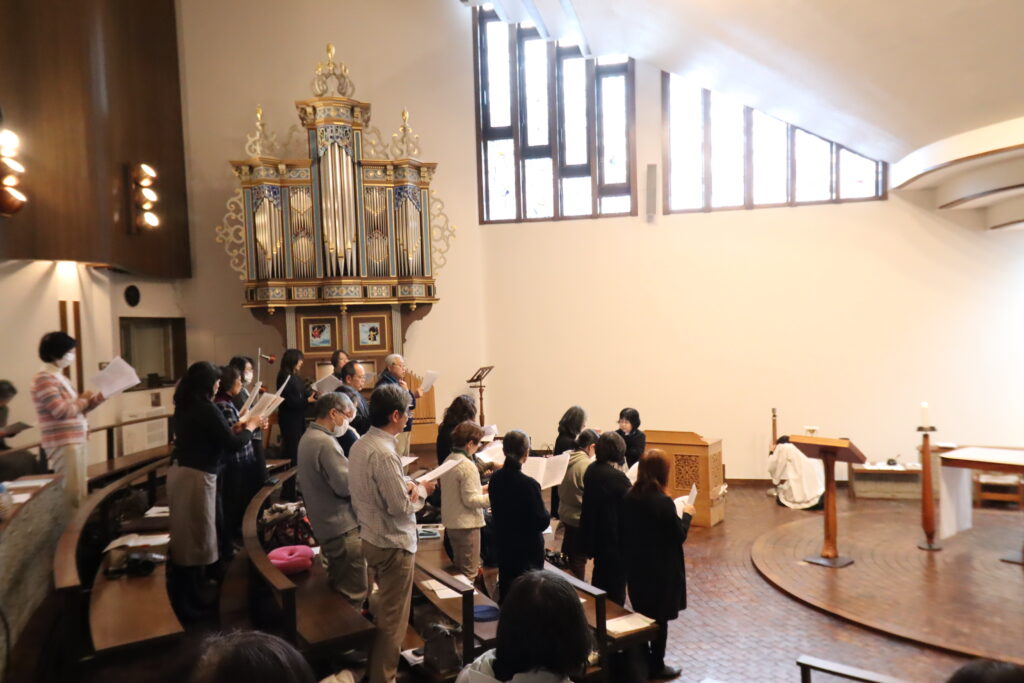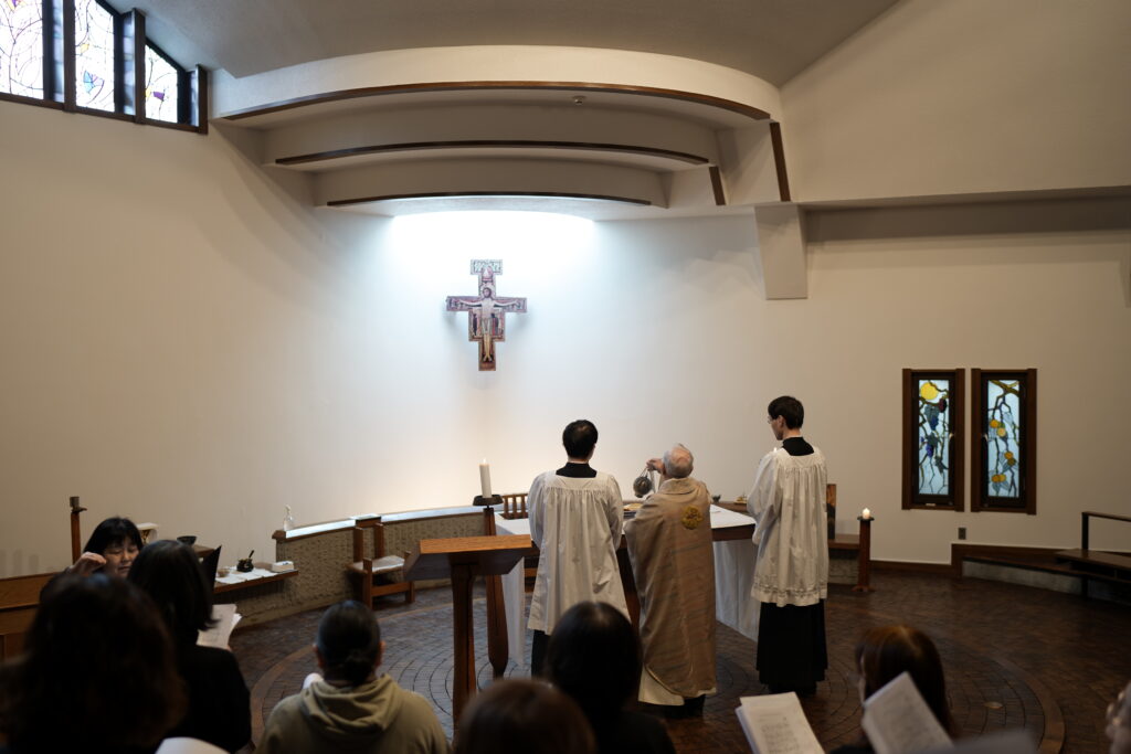 この日は毎年、教会音楽科の授業の中で学んできた灰の水曜日の典礼で用いるグレゴリオ聖歌を、ミサ典礼の中で実践する場となっています。聖グレゴリオの家聖歌隊と本科・専攻科生徒が合同で聖歌隊を編成し、各固有唱や詩編を歌うほか、朗読や共同祈願も担当します。