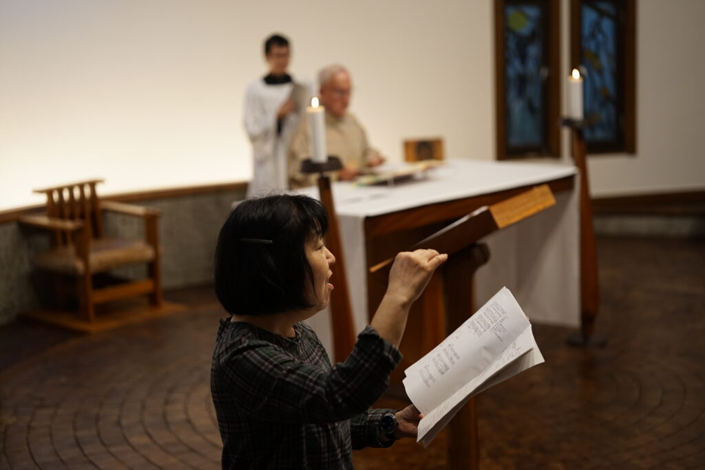 ミサの中でグレゴリオ聖歌の指揮をするのは講師の鈴木菜穂子さん。