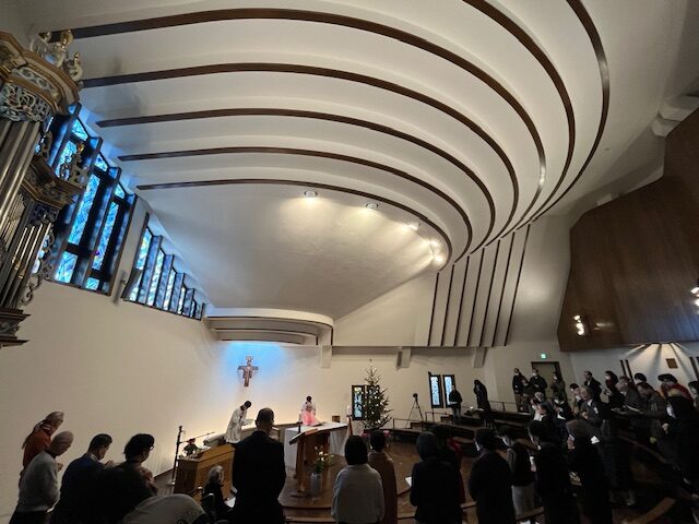 今年のクリスマスは、12月25日10時30分から、マルシリオ神父の司式により主の降誕・日中のミサでお祝いしました。真夜中ミサを行いませんでした。オルガンの奏楽はJ=P. メルカールト氏が担当しました。